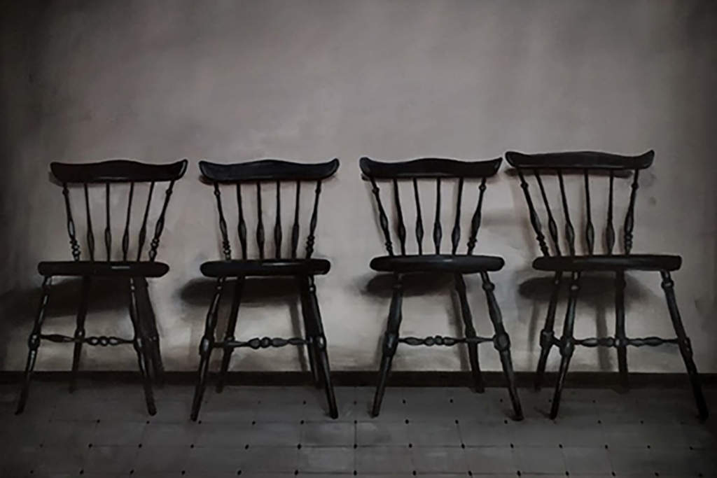 The artist recently won Best in Show at the UWG Juried Student Art Exhibition for his painting, “Growing Fonder” (pictured above). His inspiration came from his mother, who would take away chairs from the dining table when a family member moved away from home. The painting reminded him of the family he misses so much.