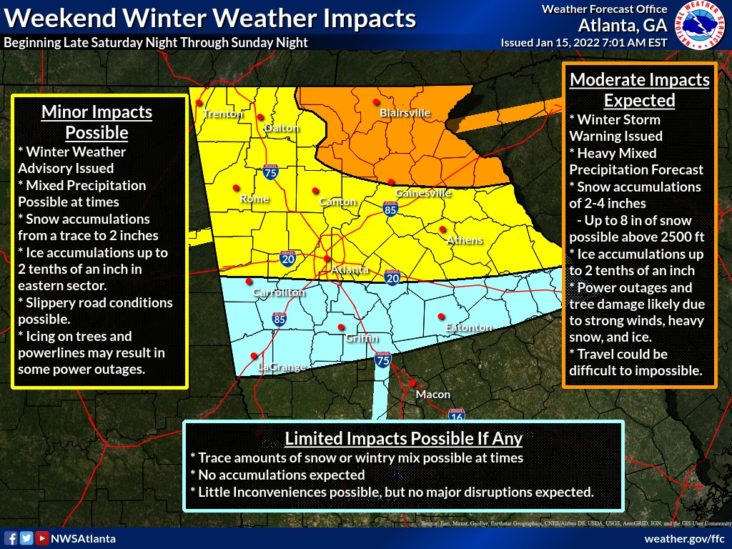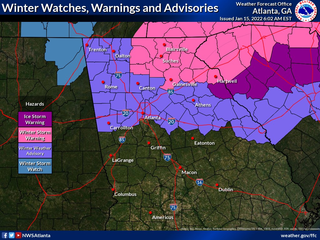 - A Winter Weather Advisory has been issued for West Georgia from midnight tonight through midnight Sunday night.